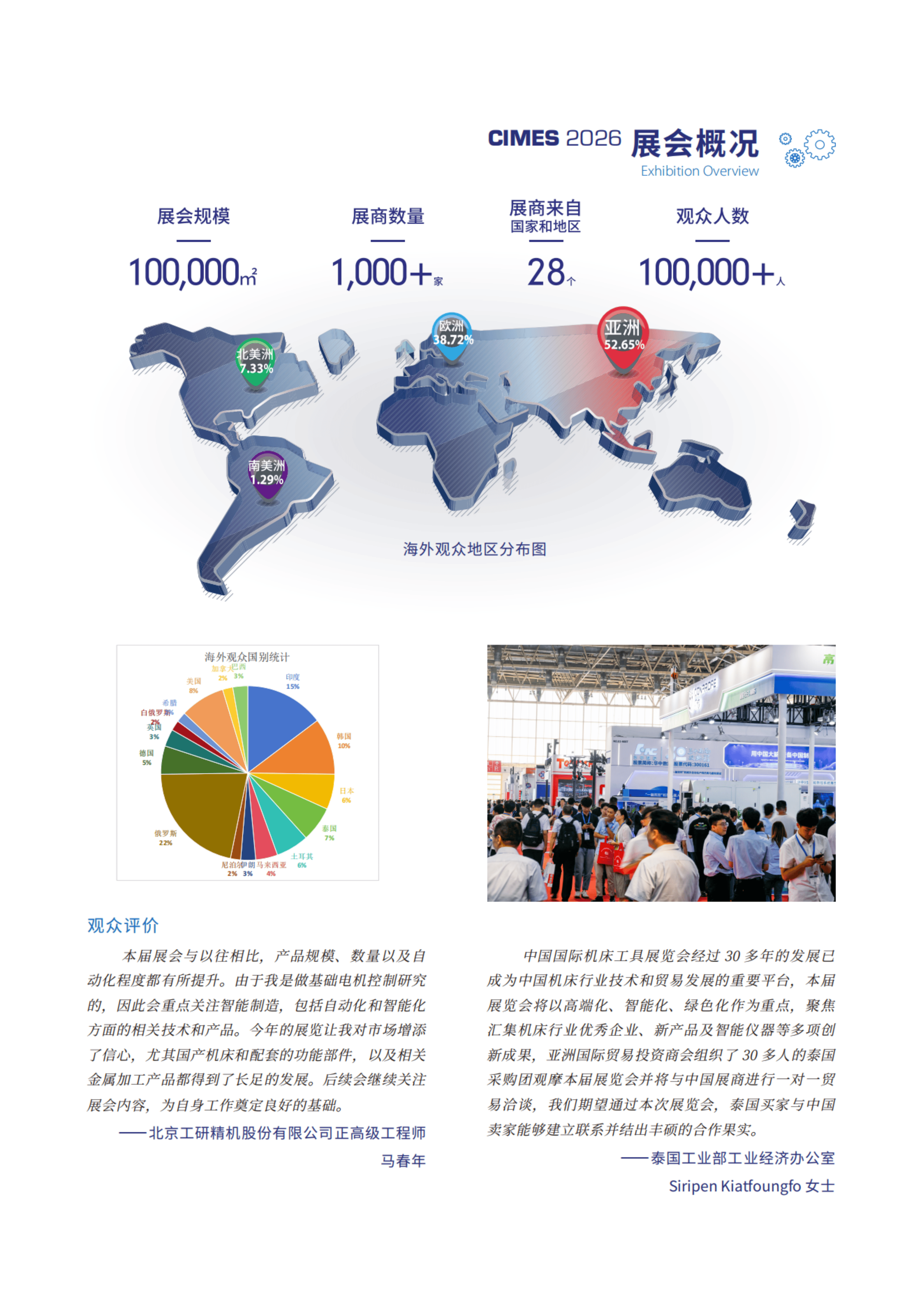 2026国际机床博览会(CIMES2026)是全球机床行业的嘉会,将于2026年5月25日至29日正在中国国际展览核心(顺义馆)昌大举办。做为中国最具影响力的国际工业母机财产博览会,CIMES自1992年开办以来,每两年举办一次,已成为全球第三大机床展会,汇聚全球顶尖机床企业,展会估计吸引来自28个国度和地域的1300+家参展商,展览面积达12万平方米,专业不雅众超10万人次,是机床行业商贸合做、手艺交换、财产对接的最佳平台。