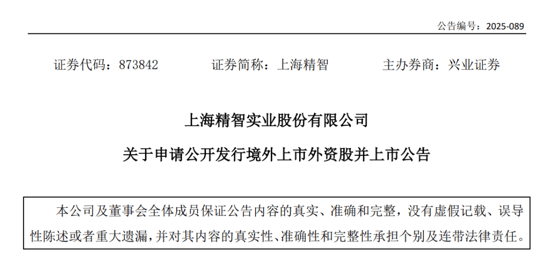 (以下简称“上海精智”)发布通知布告称,公司于2025年12月23日董事会审议通过了拟刊行H股的议案。