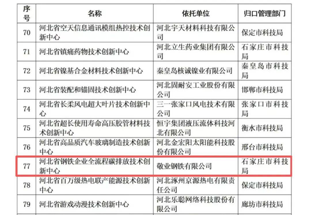 ,省科学手艺厅发布了2025年新建省手艺立异核心名单。由敬业钢铁无限公司做为依托单元的“省钢铁企业全流程碳排罢休艺立异核心”成功获批。